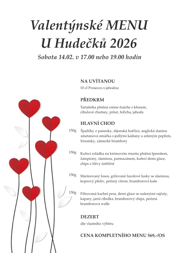 Protože víme, že láska prochází žaludkem, i letos jsme pro vás a vaši drahou polovičku připravili neodolatelné Valentýnské menu, které vám rozhodně zpříjemní tento romantický den! 💖